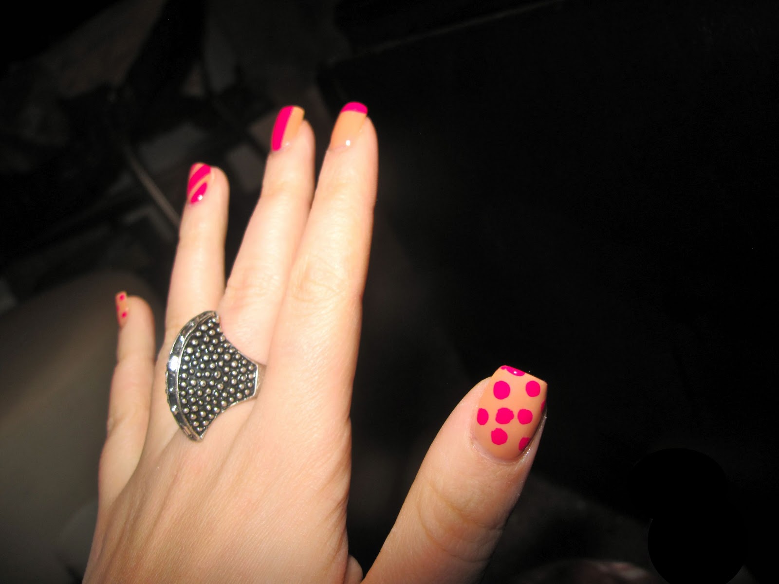 By the look of my nails you would think that I have WAY too much time on my hands. Not the case at all…I’m just crazy! My mark. mini Nail Lacquers came in the mail and I couldn’t wait to try them! Of course I couldn’t decide what color to use first so I just used both. The mini brushed made it so easy to do fun designs on my nails. I’m LOVING the Fuschia color obviously, who doesn’t love pink nails. The Nude color is so different than any other polish I’ve seen in the stores, its a tan color but when its hits the light its iridescent and has a purple/pink glow to it. & I’m loving all these mini polishes coming out (like my mini Katy Perry polishes!). I don’t know why I ever bought a full sized bottle, I never go through it.