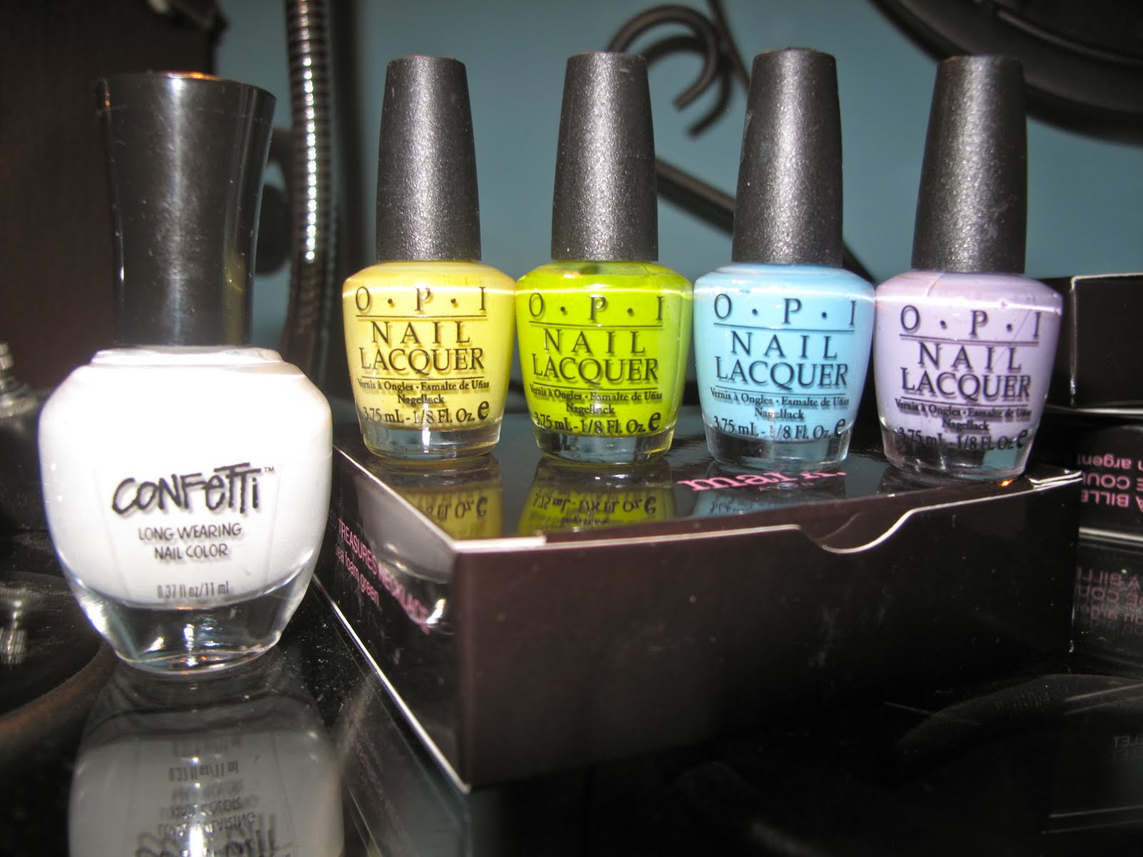 (l to r) Confetti in “Wedding White” OPI Shrek Collection in “Fiercely Fiona”,”Who The Shrek Are You”, “Whats With The Cattitude”, “Rumples Wiggin”