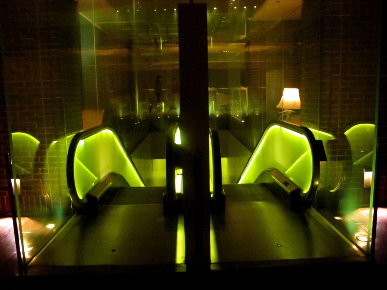 We stayed in the A-M-A-Z-I-N-G Hudson Hotel in Midtown Manhattan, if you ever have a chance to stay there its beautiful. The decor is beautiful, the giant chandelier in the lobby & neon green light up escalators were the highlight for me! Plus the Hudson Hall Restaurant is so cool! It is a cafeteria style restaurant with long wooden tables, amazing food & even better drinks!