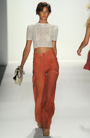 I’m obsessed with these orange pants & lace white cropped top! While I don’t think I could pull off this exact outfit I LOVE it!