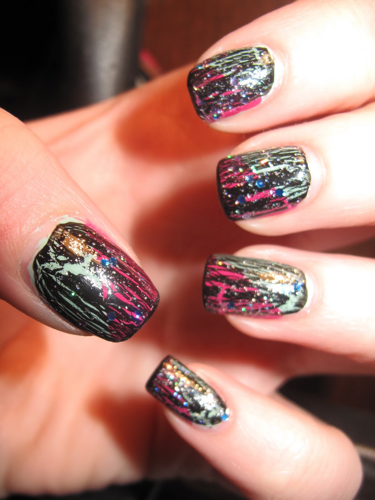 I removed the tape & used OPI Black Shatter & NYC in Starry Silver Glitter!